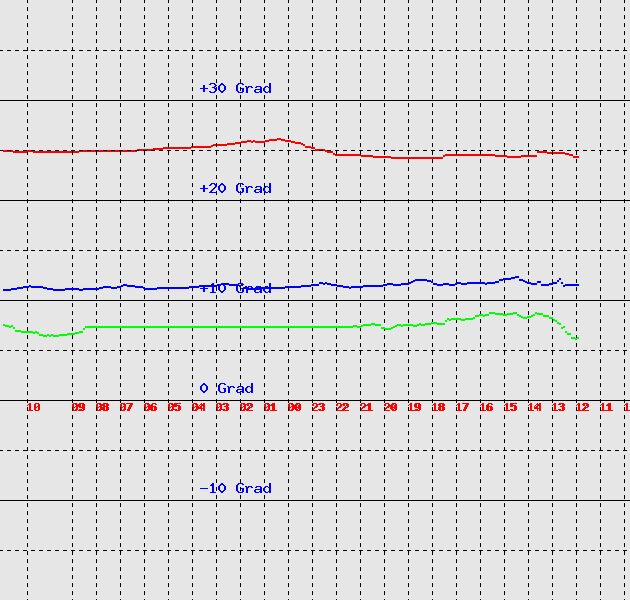 Temperatur HWR(red) - Vorrat(blau) - WP(green)